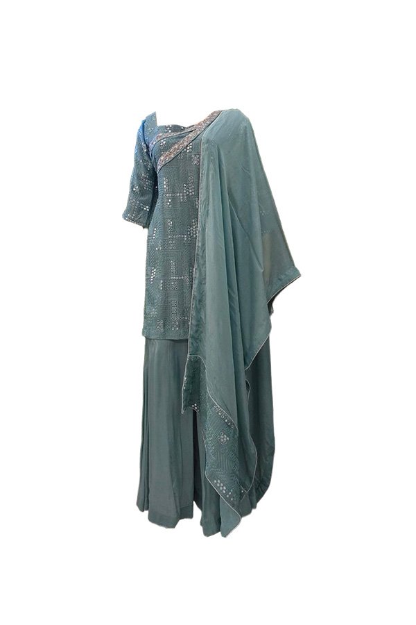 Pakistani green suit with designer hand work…